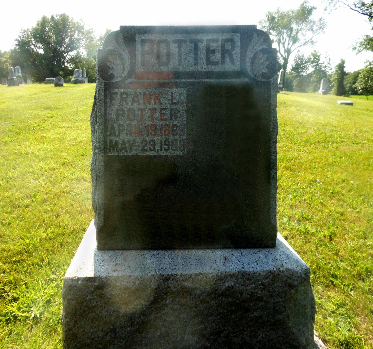Franklin Lincoln "Frank" Potter is buried in Belmont Cemetery, Belmont Twp., Iroquois Co., IL. Thanks to Find-A-Grave for making this image available.