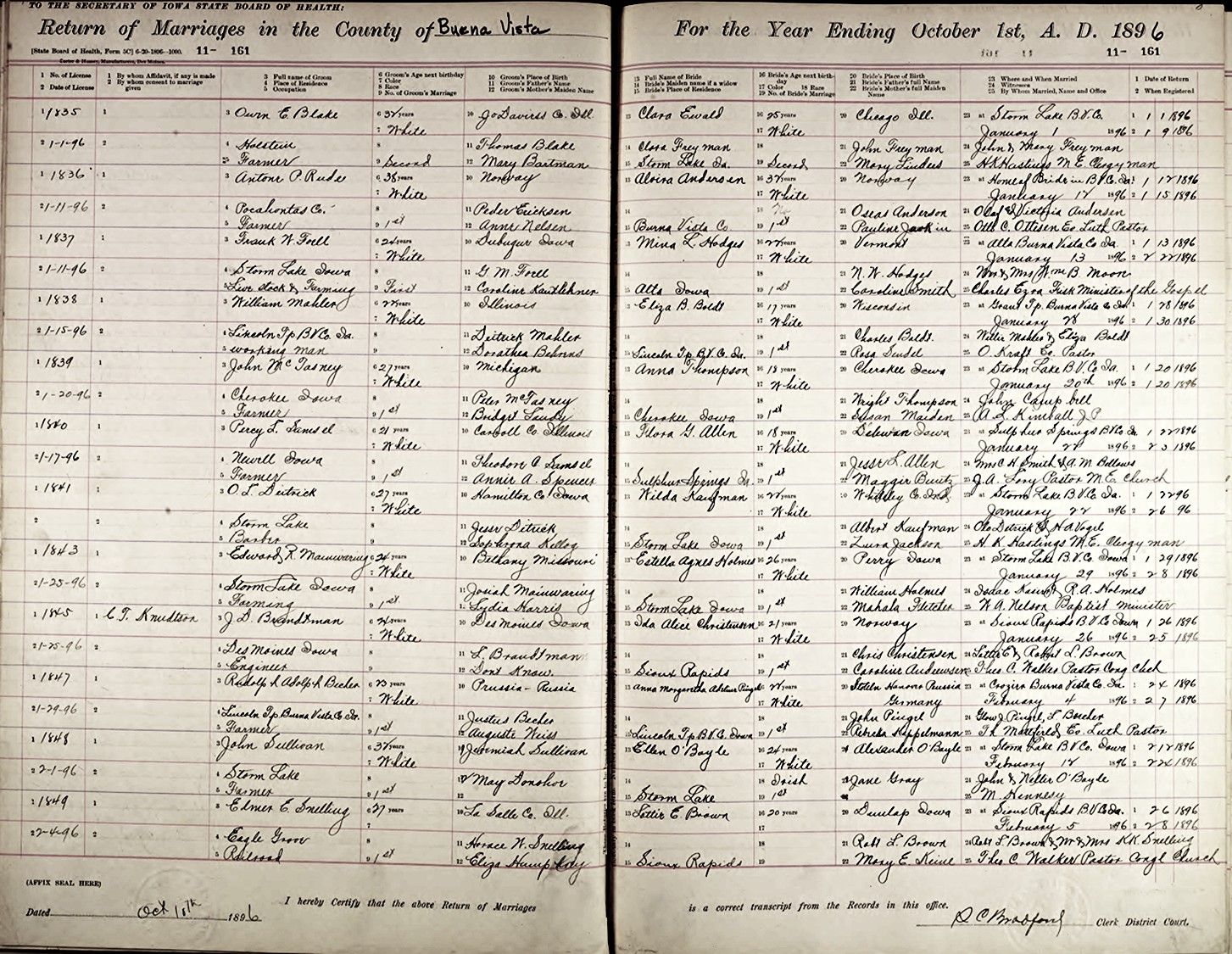 Orren E. Blake and Clara H. (Freyman) Ewald were married January 1, 1896, in the Town of Storm Lake, Storm Lake Twp., Buena Vista Co., IA.