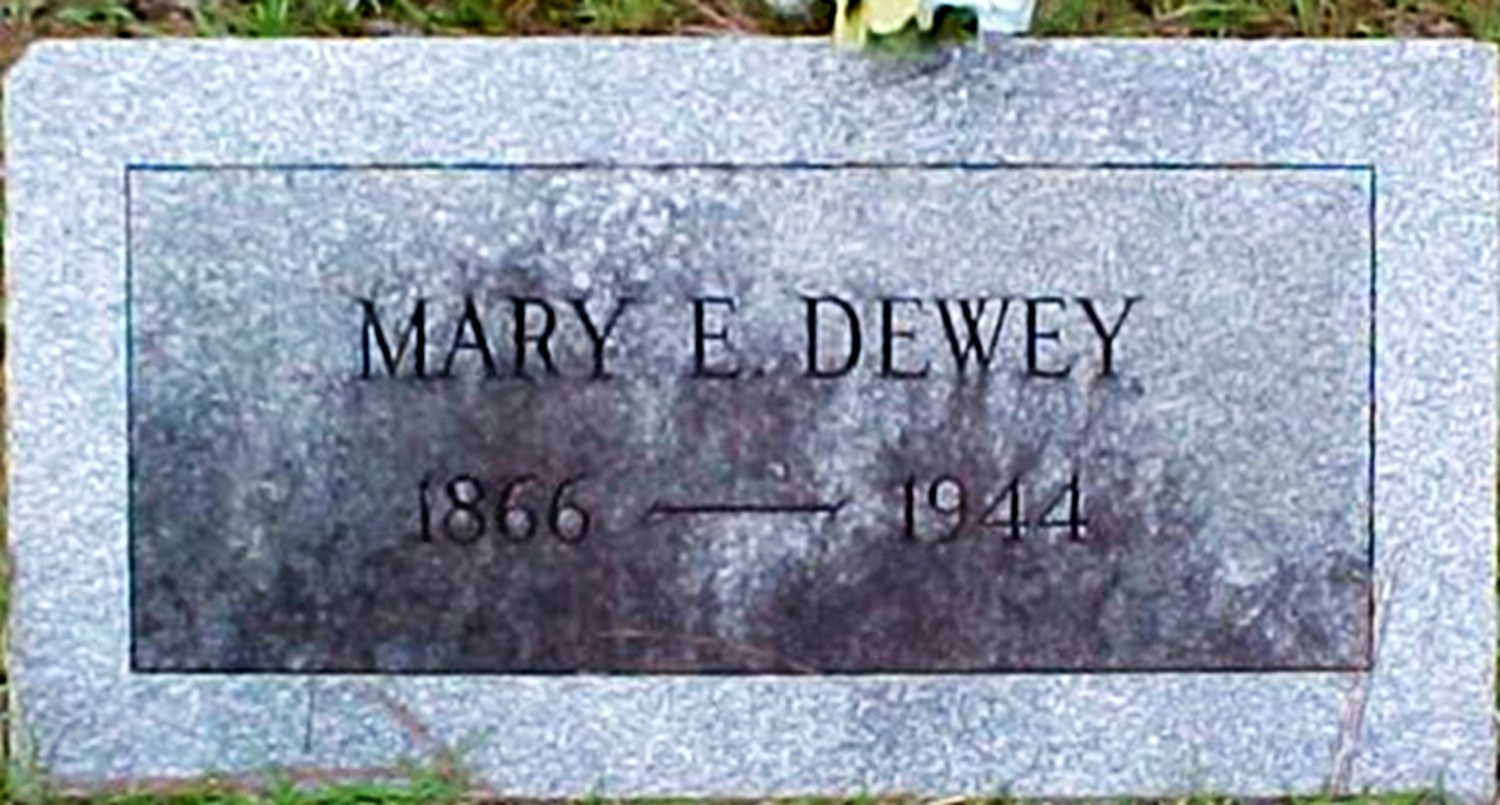 Mary Estella Dewey is buried in Oaklawn Cemetery, Centreville, Wilkinson Co., MS. Thanks to Find-A-Grave for making this image available.