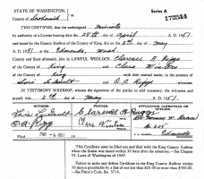 Clarence Albert Riggs and Clara H. (Freymann) (Blake) (Schlosser) Winters were married May 2, 1951, in Edmonds, Snohomish Co., WA.