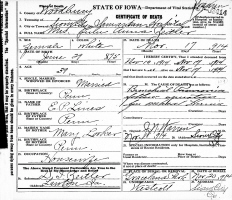 Lulu Anna Lines was born June 29, 1875, in Pennsylvania, and died November 17, 1914, at Samaritan Hospital, Sioux City, Woodbury Co., IA, at age 39. Buried in Graceland Park Cemetery, Sioux City, Woodbury Co., IA. She is the daughter of Edward Palmer Lines of Pennsylvania, and Mary C. "May" Looker of McKean Co., PA.