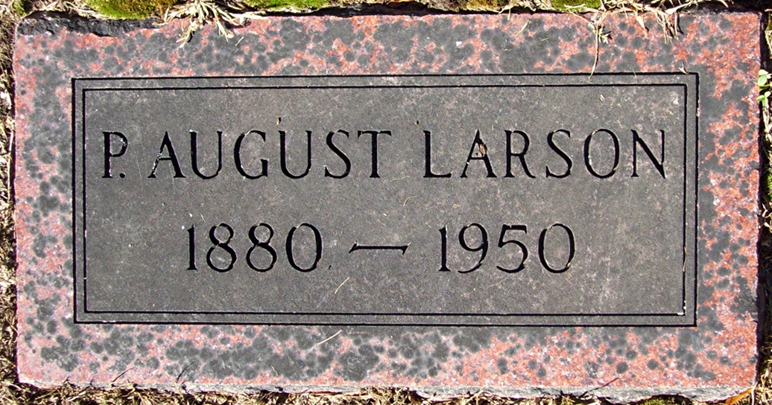 Per August Magnusson/Larson is buried in New Richmond Cemetery, New Richmond, St. Croix Co., WI. Thanks to Find-A-Grave for making this image available.