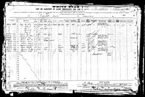 Per emigrated by himself as a single male from Sweden to the U. S. A. from Queenstown February 5, 1901, on the S. S. Majestic at age 20 as an unmarried Laborer using the name Per Aug. Magnusson, arriving at the Port of New York on May 8, 1901. His last residence was at Tors�s, Sweden, and he had $3 in cash with him. His final destination is to visit his uncle, Olaus Larsson, Box 537, Waupaca, Wis. He has a paid ticket to his final destination, which he paid for himself.
