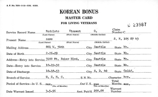 Vincent Gerald Badolato received a bonus for serving in the Korean Conflict.