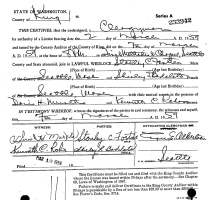 Married (2) October 22, 1954, in Seattle, King Co., WA, to John W. Weaver: Born Unknown; Unknown. Married (3) September 3, 1955, in Seattle, King Co., WA, to John W. Weaver: Born about 1930 in Cermak, WA; Unknown. Divorced January, 1977, in San Diego, San Diego Co., CA.