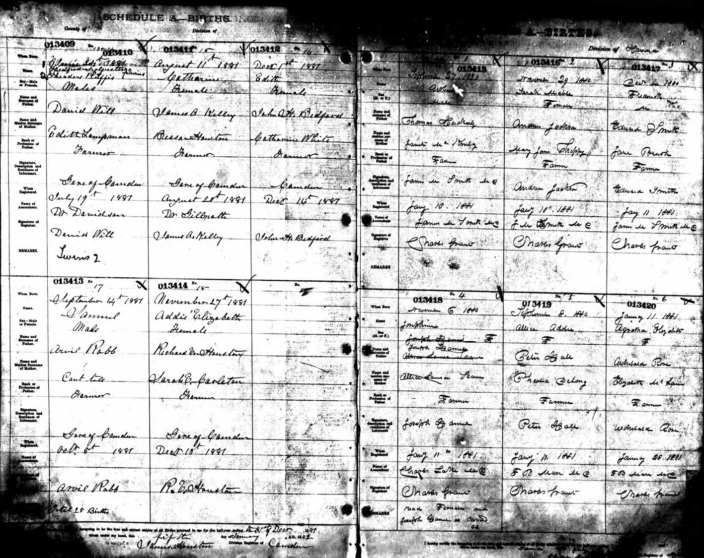 - William John Hall: Born March 20, 1877, in Howard Twp., Kent Co., Ontario, Canada; Died July 28, 1890, in Harwich Twp., Kent Co., Ontario, Canada (age 13). In 1920, Marie had a married daughter, Pearl Eva Glass (born April, 1895, in Hamilton, Ontario, Canada) who was living with Walter Byrne family in Detroit.