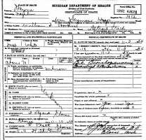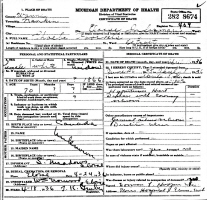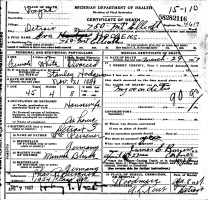 - Marie E. Walker: Born August 4, 1872, in Port Hope, Durham Co., Ontario, Canada; Died September 14, 1932, in Detroit, Wayne Co., MI (age 60). Buried in Grand Lawn Cemetery, Detroit, Wayne Co., MI. Married (1) June 28, 1887, in Ridgetown, Kent Co., Ontario, Canada , to Foster Curtis Lenderbeck: Born March 12, 1865, in Hope Twp., Durham Co., Canada West; Died October 23, 1920, in Detroit, Wayne Co., MI (age 55). Buried in Woodmere Cemetery, Detroit, Wayne Co., MI. Divorced. Married (2) February 19, 1907, in Detroit, Wayne Co., MI, to George Ed Williams: Born August, 1885, in Canada; Died Unknown, at age Unknown. Divorced. Married (3) July 17, 1915, in Lucas, Richland Co., OH, to Walter Vincent Byrne: Born May 22, 1881, in Hamilton, Ontario, Canada; Died about May 23, 1946, in Unknown (about age 65).