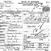 William Terry Voorhies Jr. was born May, 1862, in Ovid, Clinton Co., MI, and died November 3, 1934, at William Seymour Hospital, Nankin Twp., Wayne Co., MI, at age 72. Buried in Eloise Cemetery, Eloise, Wayne Co., MI. William was a real estate agent in Detroit, MI. He is the son of William Terry Voorhies Sr. of Unknown, and Anna Riekor/Riker (born February, 1835) of Michigan.