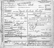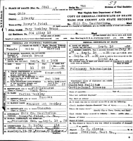 - Alva Ray "Alvie" Weekley: Born February 8, 1888, in Sistersville, Tyler Co., WV; Died about March, 1953, in Symmes, Hamilton Co., OH (age 65). Buried in Union Cemetery, Loveland, Symmes Twp., Hamilton Co., OH. Married (1) April 12, 1908, in Monroe Co., OH, to Myrtle Gertrude Bailey: Born November 3, 1886, in Sistersville, Tyler Co., WV ; Died March 3, 1911, in the Village of Felix, Jackson Twp., Monroe Co., OH (age 24). Buried in Merhley Cemetery, Monroe Co., OH. She died from Pneumonia. Married (2) October 14, 1912, in New Cumberland, Hancock Co., WV, to Fannie Margaret Campbell: Born January 19, 1893, in Raccoon Twp., Beaver Co., PA; Died April 13, 1951, in Clinton, Allegheny Co., PA (age 57). Buried in Hopewell-Hebron Cemetery, Clinton, Allegheny Co., PA. Divorced. Married (3) May 8, 1926, in Belmont, OH, to Charlotte J. (Furbee) Wilds: Born April, 1883, in West Virginia; died after 1942 in Unknown.