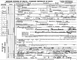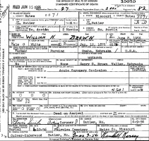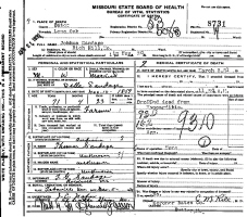 William Henry Brown died June 8, 1956, at South Austin Hospital, Butler, Bates Co., MO, at age 81. Buried in Fairview Cemetery, Bates Co., MO.