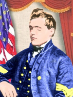 During the fighting, Coates was struck by a ball on the right side of his face, which caused him to lose both of his eyes. For his courage, the Wisconsin farm boy received a brevet promotion to Captain, in addition to the Medal of Honor, which was awarded on June 29th, 1866. His citation reads: