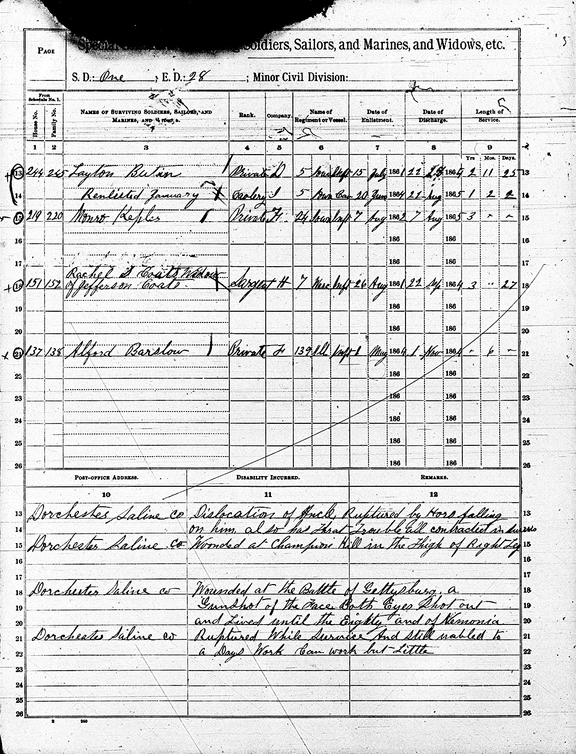 On this occasion the Medical Journal examines the case file of Sergt. Jefferson Coates, Co. �H�, 7th Wisconsin Infantry. Sergt. Coates enlisted at Boscobel, Wisconsin, August 29, 1861. At the time of his enlistment he gave his residence as Boscobel and indicated his place of birth was in Grant County, Wisconsin. Regimental records show that Sergt. Coates was promoted from Corp. to Sergt. It also shows that he was wounded twice, once at South Mountain, September 14, 1862, and again at Gettysburg, July 1st, 1863. The wound he received at Gettysburg was debilitating and caused the loss of both eyes. Sergt. Coates was awarded the Congressional Medal of Honor, for gallantry in action, and Brevetted to the rank of Captain, July 1, 1863. Regimental records show that he was discharged from active military service September 1, 1864.