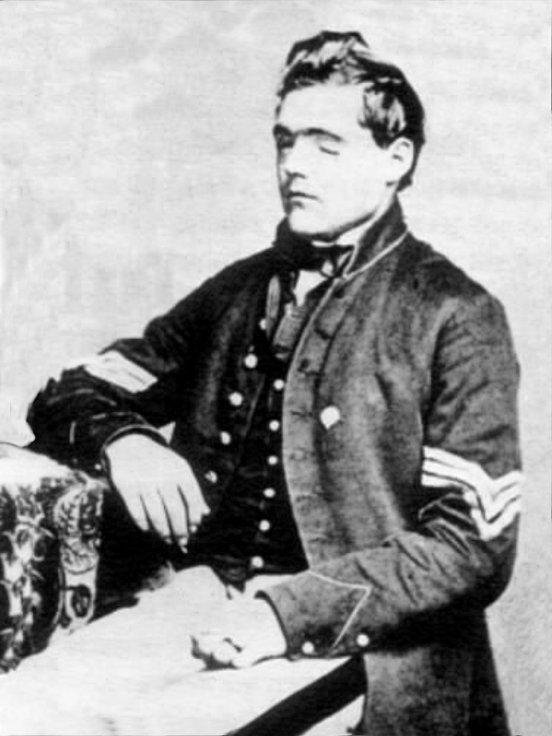 Francis Jefferson Coates, as a Sergeant, suffered the loss of his second eye on July 1, 1863. Since the damage was so severe, it seemed to the surgeons that both eyes were shot out at this time.