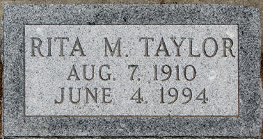 Rita Marie (Chartier) Taylor died June 4, 1994, in Auburn, Nemaha Co., NE, at age 83. Buried in Saint Peters Cemetery, Jefferson, Union Co., SD.