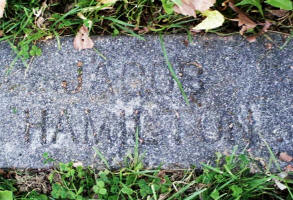 - Marion Hamilton: Born March 19, 1870, in the Village of Orion, Town of Orion, Richland Co., WI; Died September 22, 1882, in the Village of Orion, Orion Twp., Richland Co., WI (age 12 Ys 6Ms 3Ds). Buried in Indian Creek Cemetery (a.k.a. Orion Cemetery), Town of Orion, Richland Co., WI. The marker is broken off and leaning against a tree in row 9. Hard to read. It is very likely that John Hamilton is also buried there.