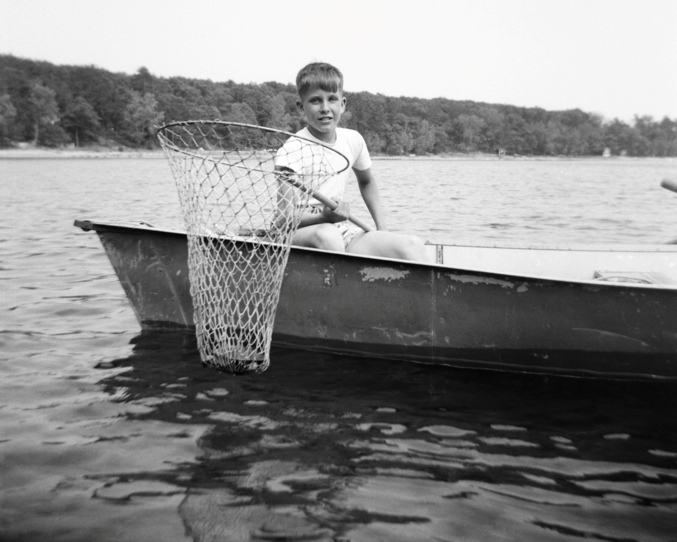 Leigh Larson, Kirt Fiegel, and Reed Larson, Pine Lake, Town of Springwater, Waushara Co., WI, about 1945.