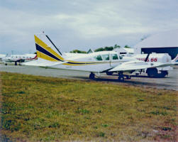 Reed Allan Larson was initially certified as a single engine private pilot with instrument rating. He later also became certified as a multi-engine commercial pilot with instrument rating, and frequently flew the Hi-Life Rubber Inc. in its 1979 Piper Aztec twin engine turbocharged and fuel injected company plane. The plane, a Piper Aztec with tail No. N6879A, had retractable landing gear, held Five passengers plus the pilot, and was kept at the company-owned hangar, Watertown Municipal Airport, Watertown, Jefferson Co., WI. The plane was eventually sold, and as of 2022 has remained operational. The more recent plane photo is on the right.
