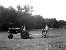 Leigh Larson and Reed Larson, and possibly Kirt Fiegel, Le-Ki-Re Ranch, Town of Shields, Dodge Co., WI, about 1945.