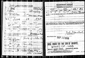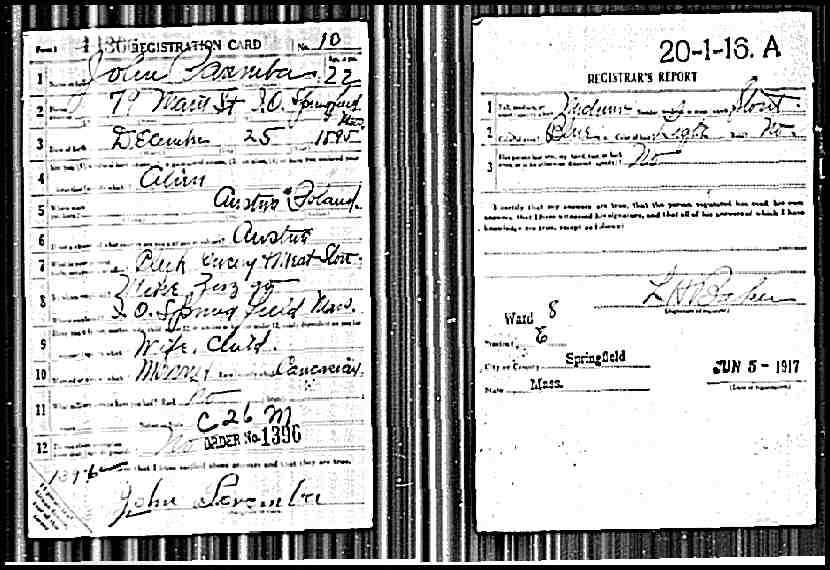 The WWI Draft Registration Report dated June 5, 1917, shows John Poremba (age 22) born December 25, 1895, in Austria, Poland, is a Clerk for Grocery Meat Store and is living at 79 Main St., Springfield, Hampden Co., MA. He has a wife and child.