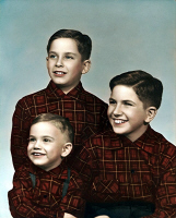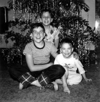 LeRoy Bickett, Leigh Larson, and Reed Larson, Christmas, Bickett residence, 700 Clyman Street, Watertown, Jefferson Co., WI , December, 1943.