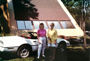 Barbara Mary "Barb" (Boyce) Oiler and Joyce Ann (Wacelitz) Larson at the new Leigh Larson house, Town of Milford, Jefferson Co., WI, about 1984.