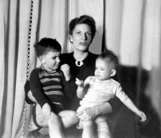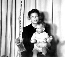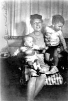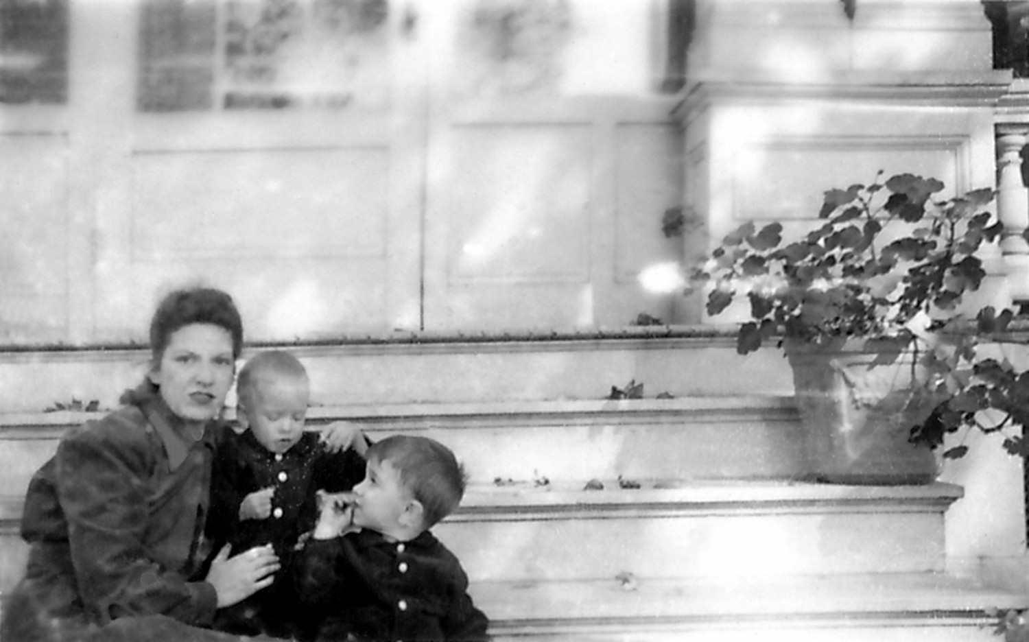 Ruth (Bickett) Larson, Reed Larson, and Leigh Larson, Bickett residence, 700 Clyman Street, Watertown, Jefferson Co., WI, about 1943.