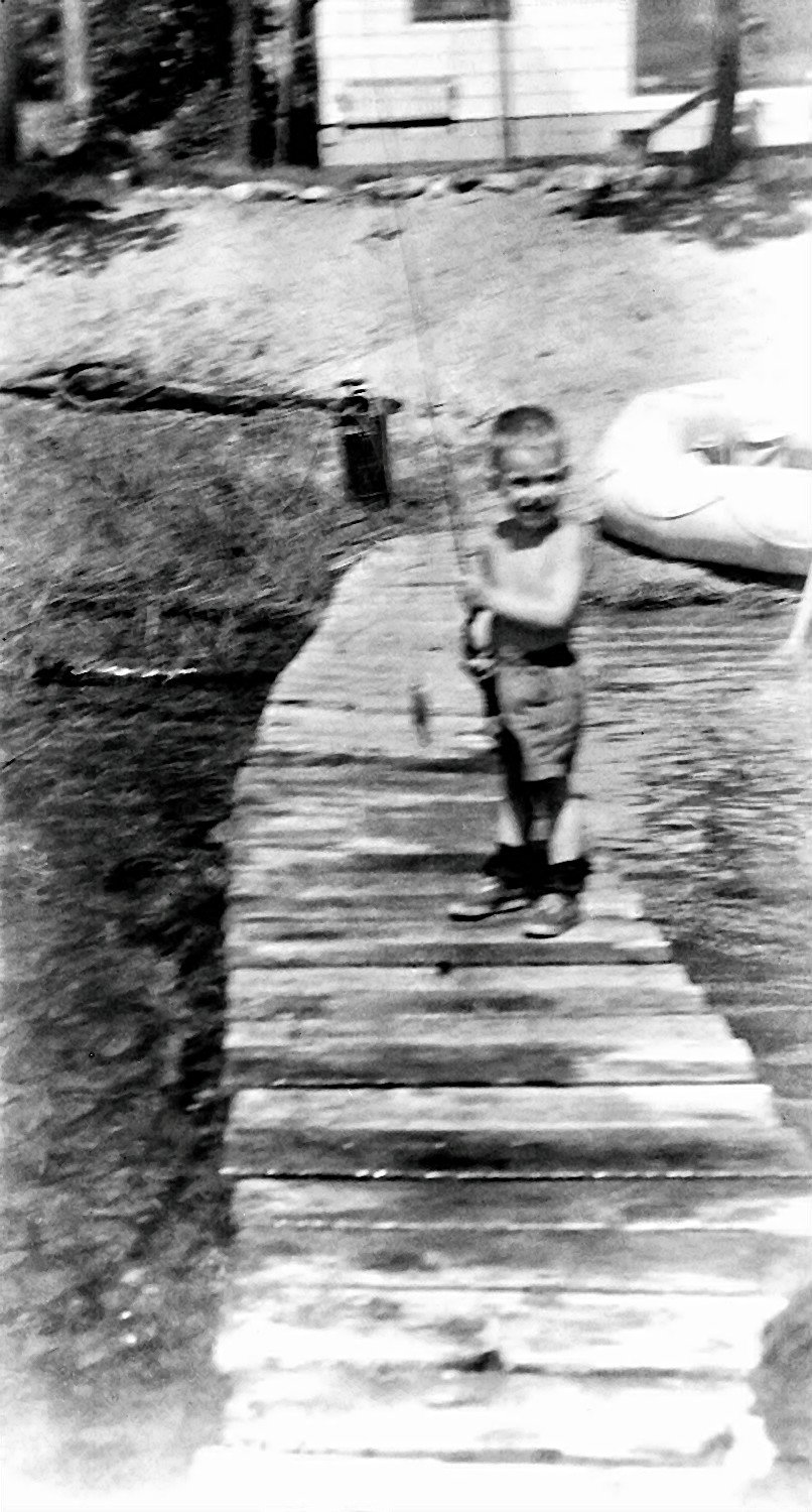 The Bruce Dean Larson family, with their family dog Frodo, at the Leigh Larson cottage, Johns Lake, Town of Springwater, Waushara Co., WI, August, 1972. Joyce Ann (Wacelitz) Larson is at the end of the pier in most of the pictures.