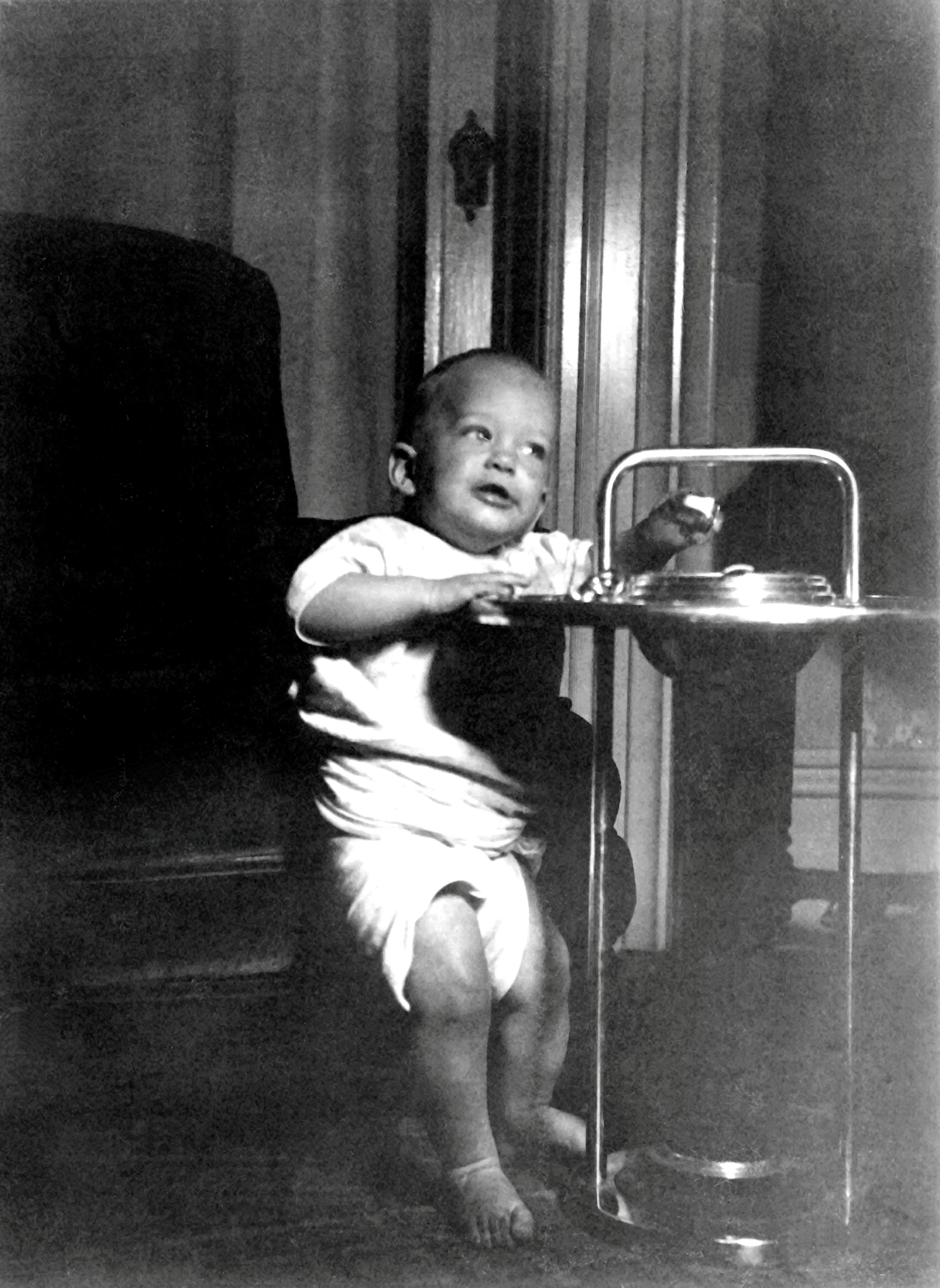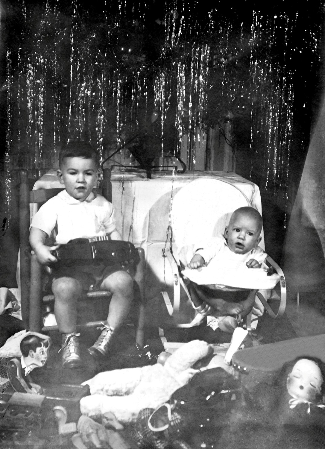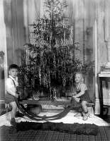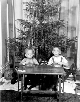 Reed Larson and Leigh Larson, Bickett residence, 700 Clyman Street, Watertown, Jefferson Co., WI, Christmas, 1943.