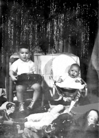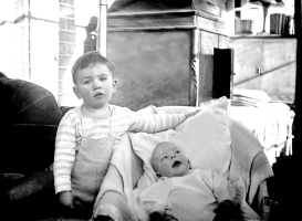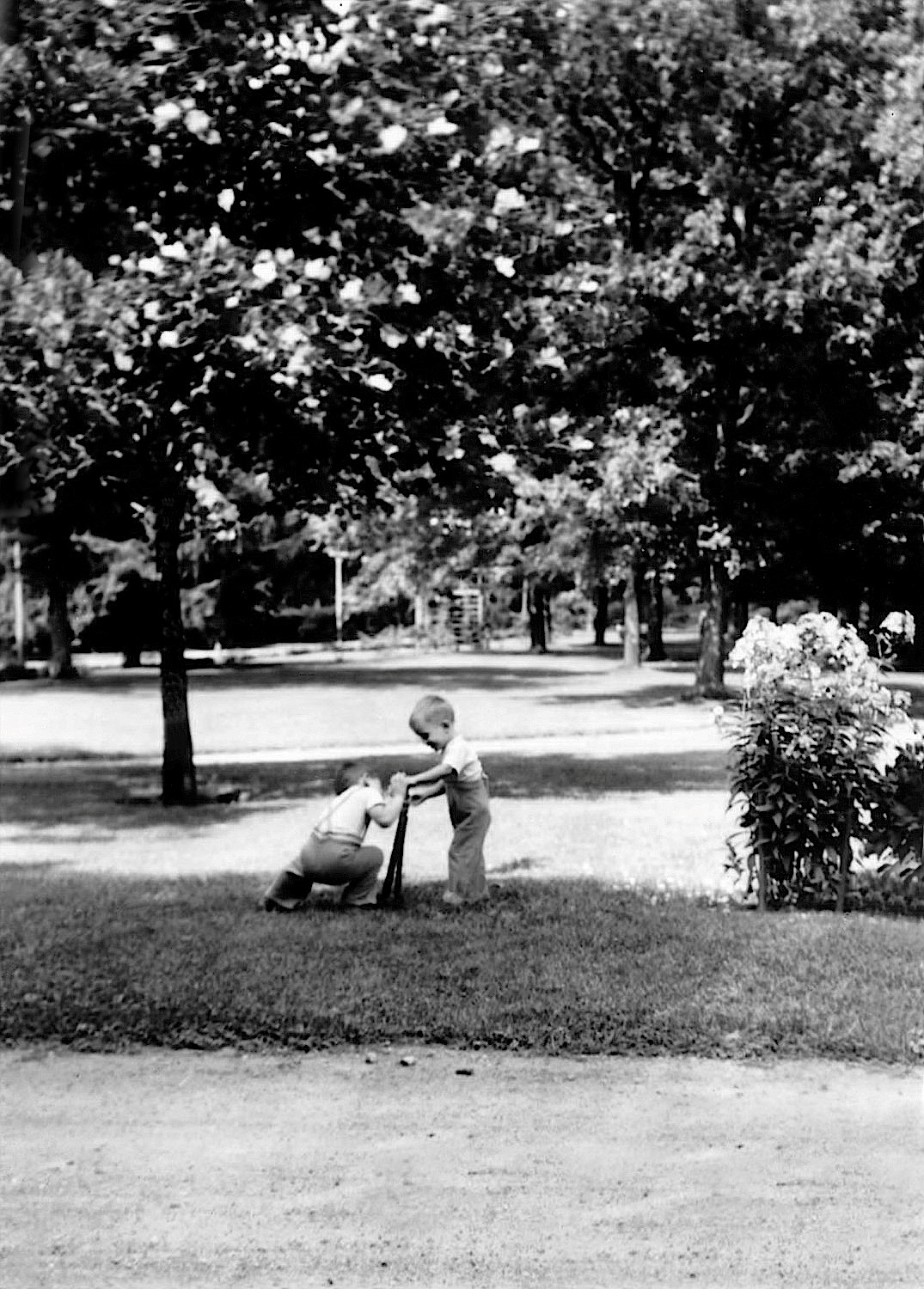 Leigh Larson and Reed Larson, Bickett residence, 700 Clyman Street, Watertown, Jefferson Co., WI, October, 1942.