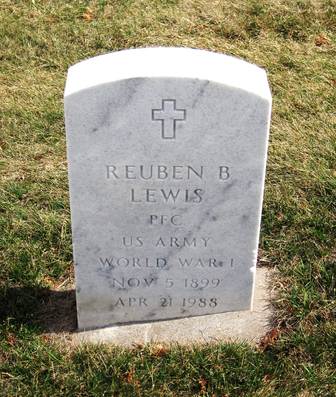 Reuben Benjamin "Bube" Lewis died April 21, 1988, at the Wisconsin Veterans Home, King, Waupaca Co., WI, at age 88. Buried in Central Wisconsin Veterans Memorial Cemetery, King, Waupaca Co., WI.