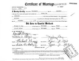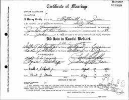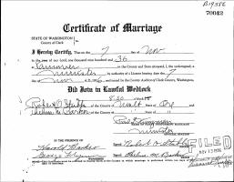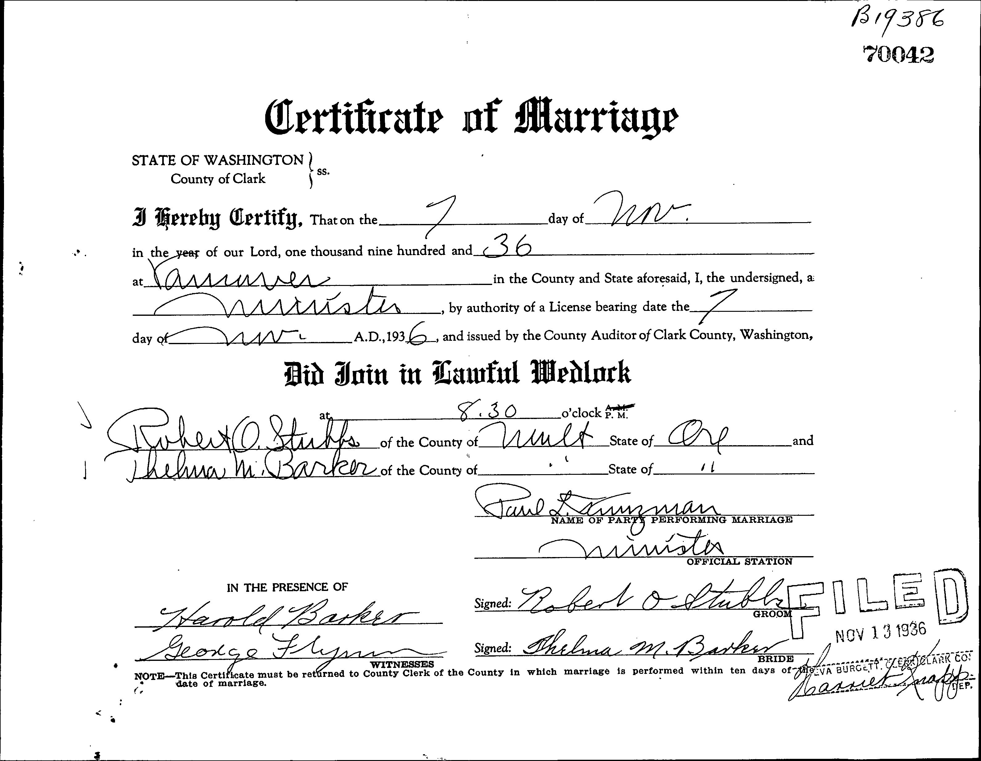 Robert Orin "Bob" Bunker/Stubbs and Thelma M. Barker were married November 7, 1936, in Vancouver, Clark Co., WA.