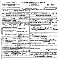 Henry Andrew Sholty died July 18, 1937, at his beach home, Edgewood Beach, Cedarville, Menominee Co., MI, at age 49.Buried in Stephenson Township Cemetery, Stephenson, Menomonee Co., MI.