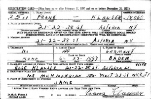 The WWII Draft Registration Report dated February 15, 1942, shows Frank Klauser (age 44) born June 27, 1897, in Baden, Germany, is living at 21-22-38th Street, Astoria. He is deaf and uses an ear phone to hear.