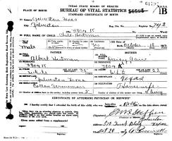 1932, in Grand Saline, Van Zandt Co., TX; Died September 11, 1990, at St.