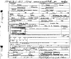 August 13, 1935, in Fort Worth, Tarrant Co., TX; Died April 15, 1998, at a