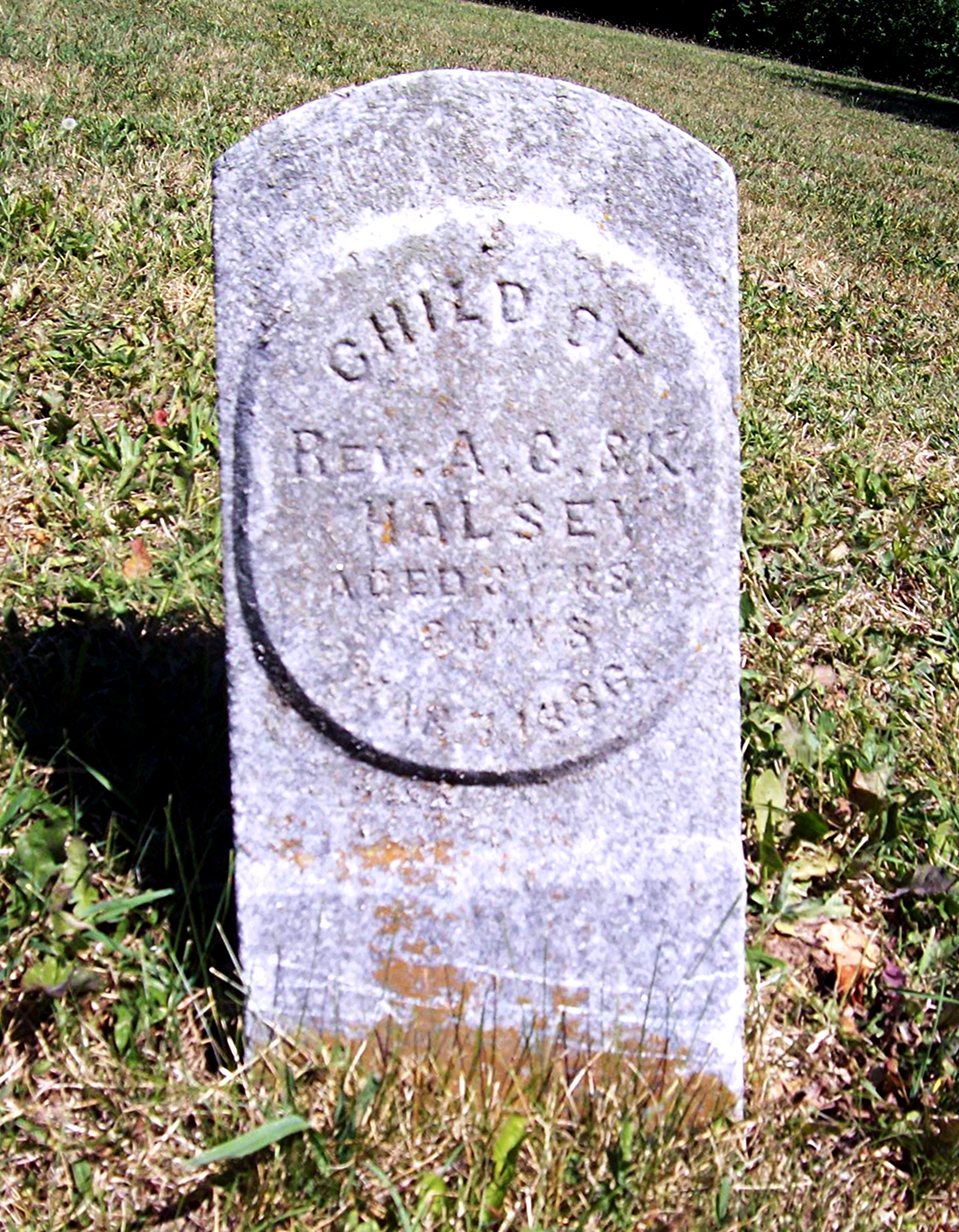 Salome Delia Halsey died April 7, 1886, in Richland Co., WI, at age 3. Buried in Oak Ridge Cemetery, Orion Twp., Richland Co., WI.