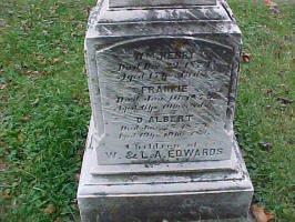 Wm. Henry Edwards, Frankie Edwards, and Albert Edwards, three children of W. and L. A. Edwards, are also buried in Estabrooks Cemetery, Fond du Lac, Fond du Lac Co., WI. Many thanks to Larry and Linda Kopet for making this image available.