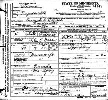 The 1920 U. S. Census taken on January 29, 1920, shows William H. Harris (age 61) born in Wisconsin to New York-born parents is a widowed General Farm Farmer renting his farm and is living in Compton Twp., Otter Tail Co., MN. Living with him are his unmarried children, all born in Minnesota to Wisconsin and Minnesota-born parents except Benjamin was born in North Dakota: Ray Harris (age 25) a Telephone Office Operator; Cyrus Harris (age 20) a Farm Laborer on the Home Farm; Alisemon Harris (age 16); Benjamin Harris (age 14); Gordon Harris (age 12).