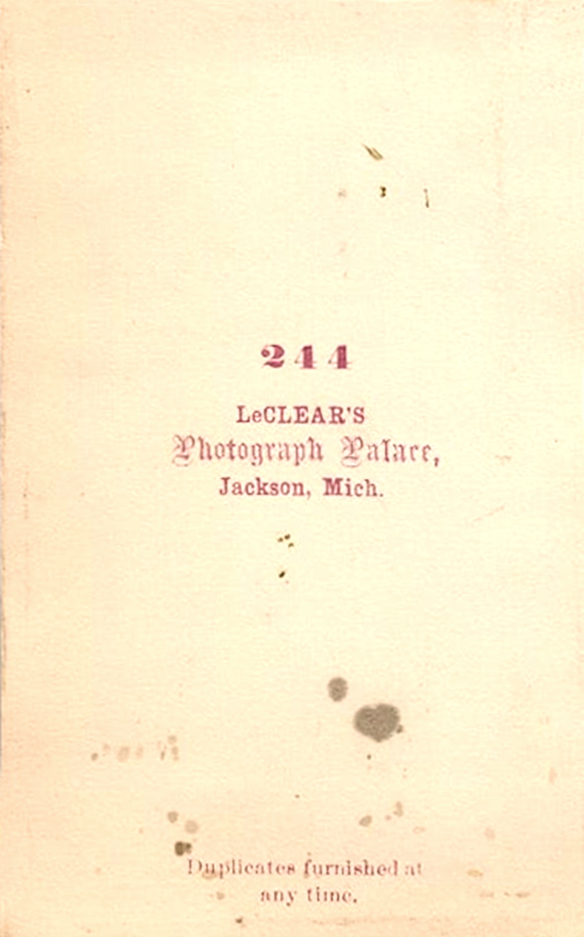 Pictures of the Archelaus Towne Hall and the reverse side of the Archelaus Towne Hall picture, Sarah Jane "Jennie" (Altenburg) Hall , George Foster Hall, and Charles Towne Hall, Jackson, Jackson Co., MI, ca. 1864 . Images scanned from old family albums and provided by Donna Glass.