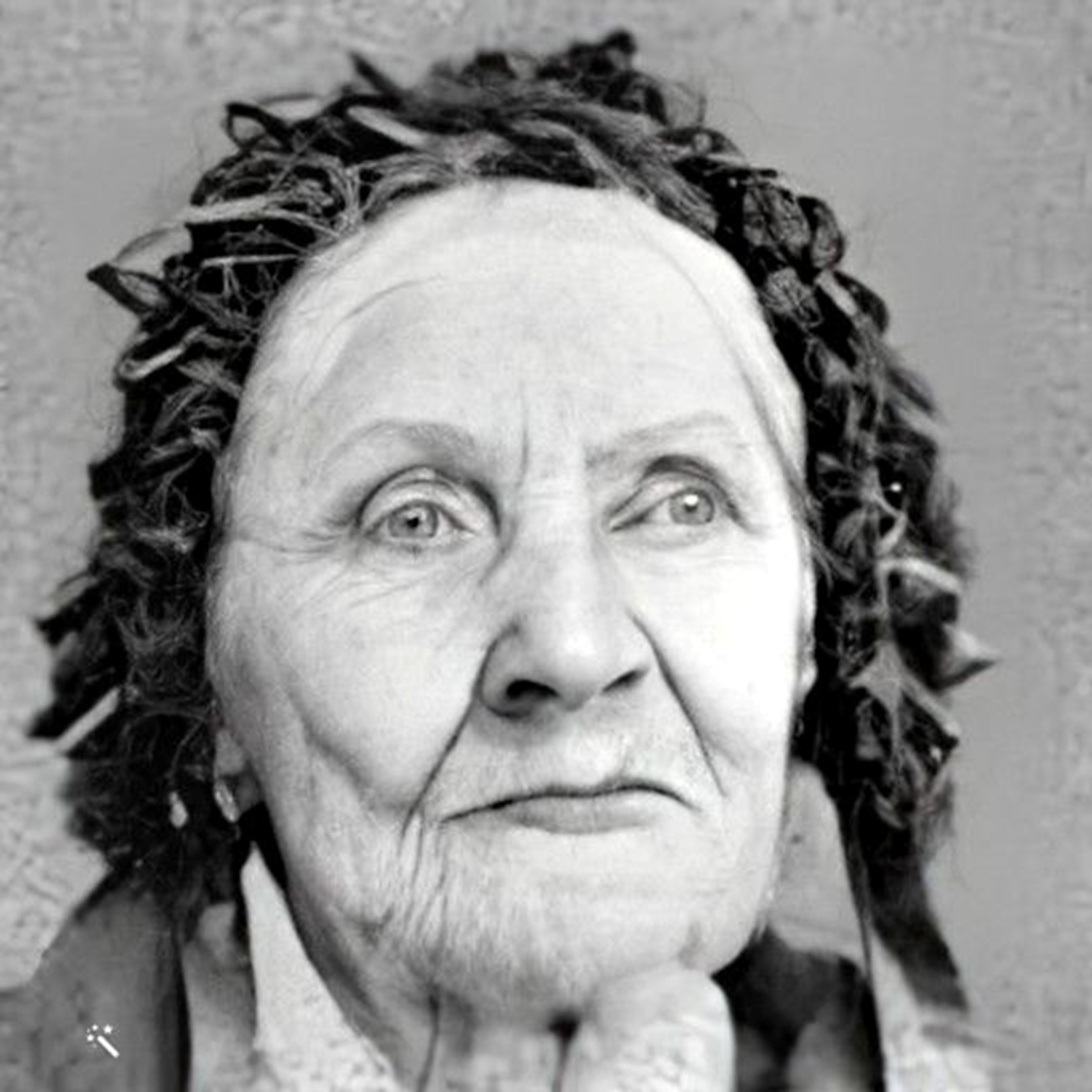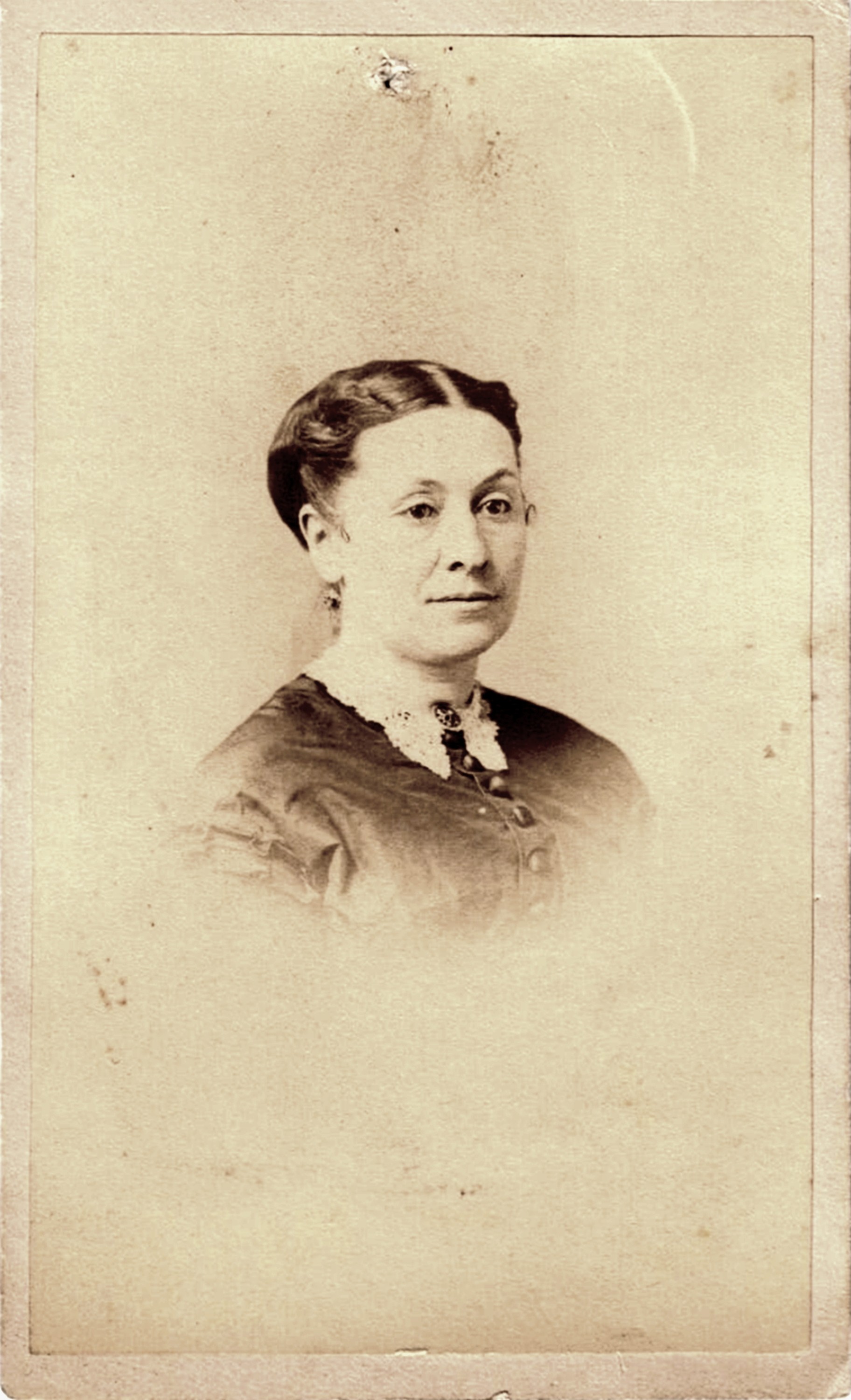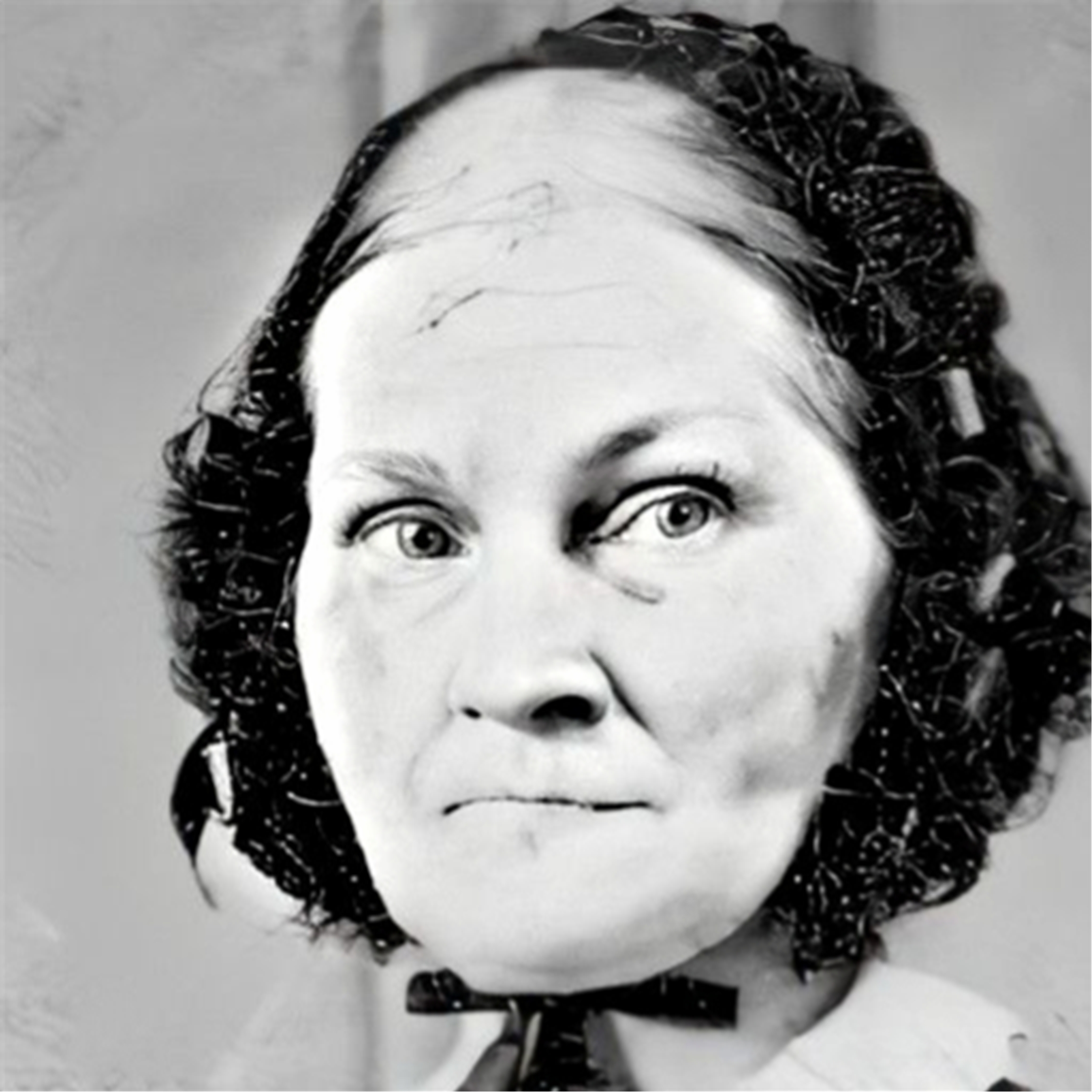 Presumed pictures of Sally (Hutchins ) Hall , ca. 1880 . The two pictures in the top row are from an original image provided by Donna Glass. The two pictures in the bottom row have been modified with MyHeritage software, and compare the faces of presumed Sally (Hutchins) Hall, with the 1861 picture on the left, and the 1880 picture on the right.