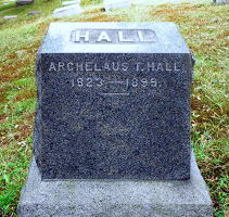 Archelaus Towne Hall was born October 20, 1823, in Westfield, Chautauqua Co., NY, and died February 22, 1899, in Binghamton, Broome Co., NY, at age 75 . Buried in Floral Park Cemetery, Johnson City, Broome Co., NY. He is the son of George Hall of Thompson, Windham Co., CT, and Sally Hutchins of Richfield, Otsego Co., NY.