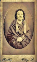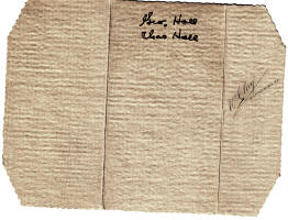 Presumed pictures of George Hall and Sally (Hutchins ) Hall , and the reverse side of the Sally (Hutchins) Hall picture, ca. 1861 . Images scanned from old family albums and provided by Donna Glass.