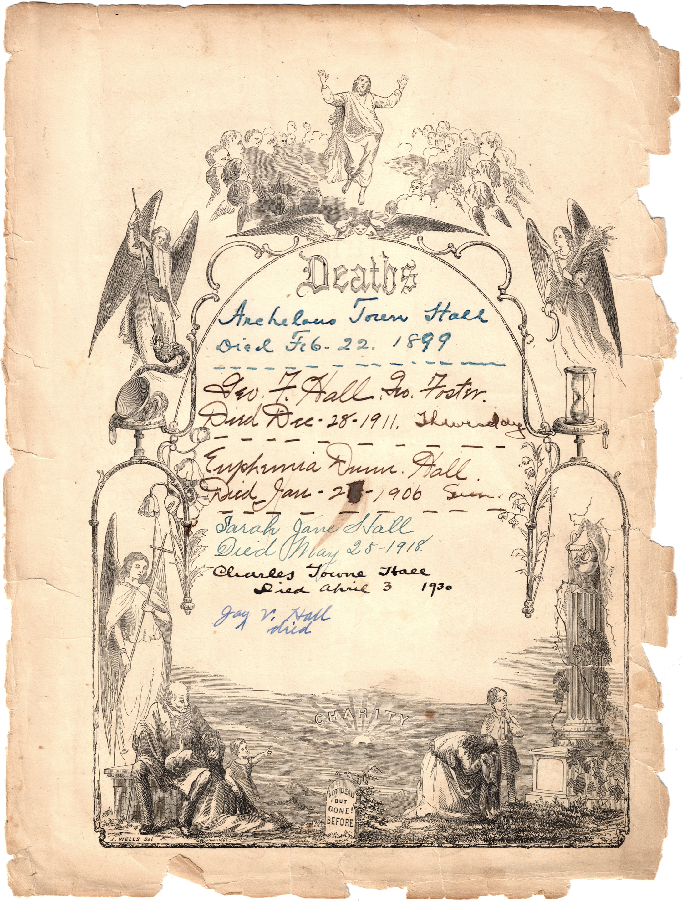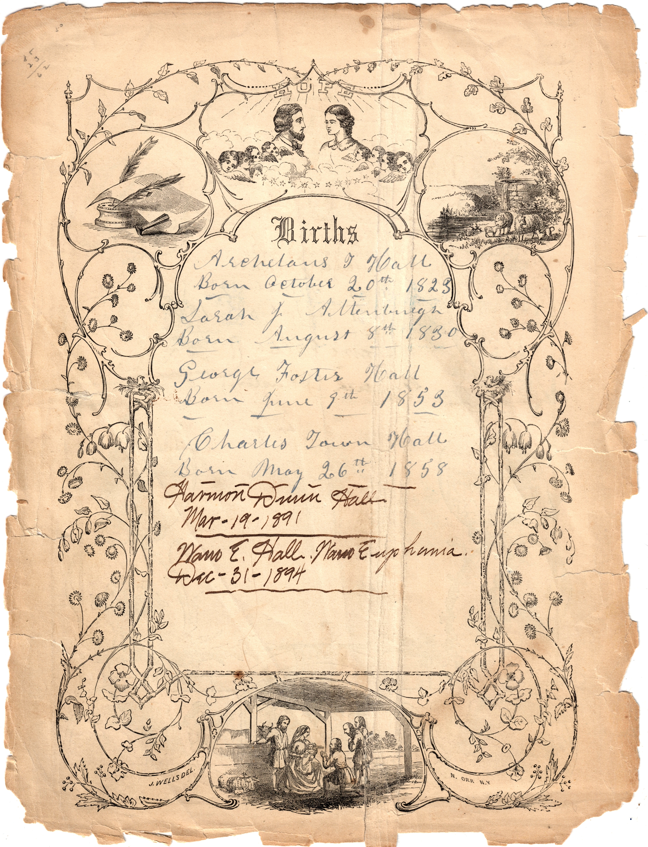 Hall Family Bible Birth, Marriage and Death Records . Images scanned from old family albums and provided by Donna Glass.