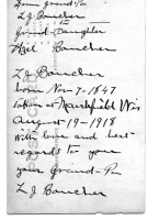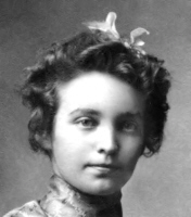 "Gran-Gran," the pet name given her by her first grandchild, yours truly, was a short, plump lady with curly, curly hair. She was good-natured and loving and was loved in turn by all who met her. Her grandchildren loved to hear her "spooky" stories, told in a dark room. One story consisted of bones coming down from the attic and joining up to form a skeleton, which yelled "gotcha!" at the end. Even though we all knew what was coming, she would build the suspense, and we jumped and screamed when the "gotcha" arrived. She had a clear, sweet singing voice and loved to sing hymns, but she would, on occasion, sing the songs that were popular when she was young, one of them being "After the Ball." She was religious and quietly spiritual and was the person who introduced me to the idea of reincarnation. A Paulson-Shidell relative had a childhood memory of her as having false teeth which clicked (true) and telling fortunes from tea leaves. She also told fortunes with cards and we would beg to have our fortunes told, but with us she would only pretend and would predict fantastic and sometimes outrageous futures. She was a "storybook" grandmother and it was a privilege to have know her.