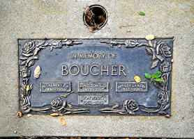 Albert Boucher (1881 - 1956); Hildegard Boucher (1915 - 1985); Jon "Bunky" Boucher (1953 - 1989); and Melton G. Boucher (1911 - 1987); are all sharing the same stone in Sylvan Cemetery, Citrus Heights, Sacramento Co., CA. Raymond Boucher (August 14, 1938 - July 21, 1982) there, but is listed separately.