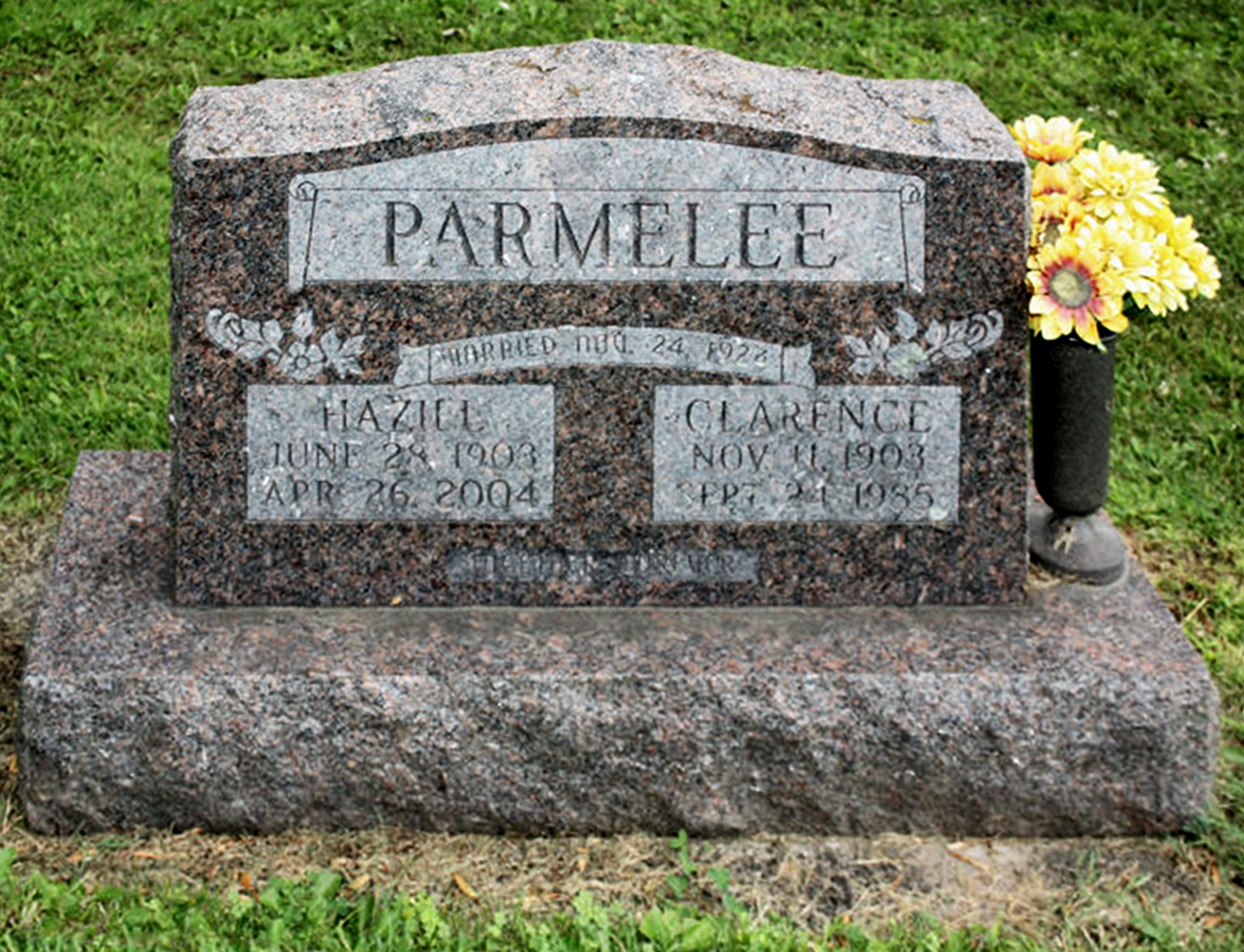 Clarence Morrison Parmelee and Haziel Stella (Boucher) Parmelee are buried in Hillside Cemetery, Marshfield, Wood Co., WI. Thanks to Find-A-Grave for making these images available.