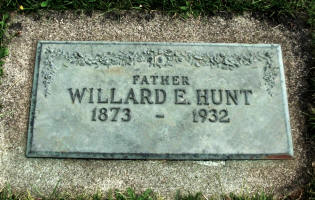 Willard Elmore Hunt died January 2, 1932, in Portland, Multnomah Co., OR, at age 60. Buried in Riverside Cemetery, Albany, Linn Co., OR.