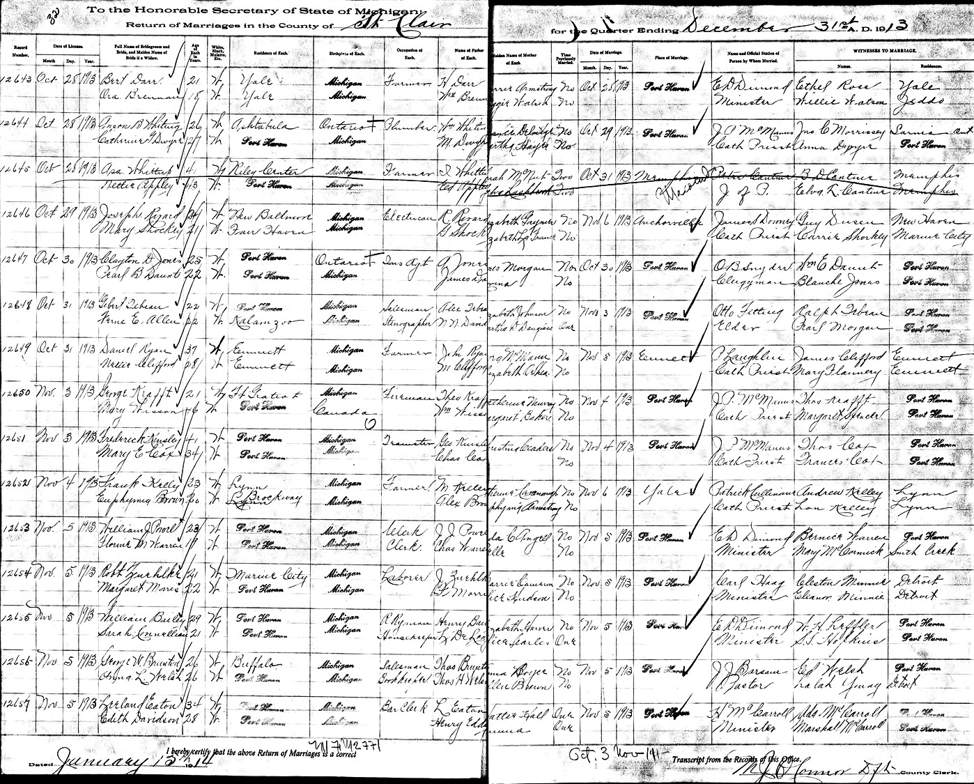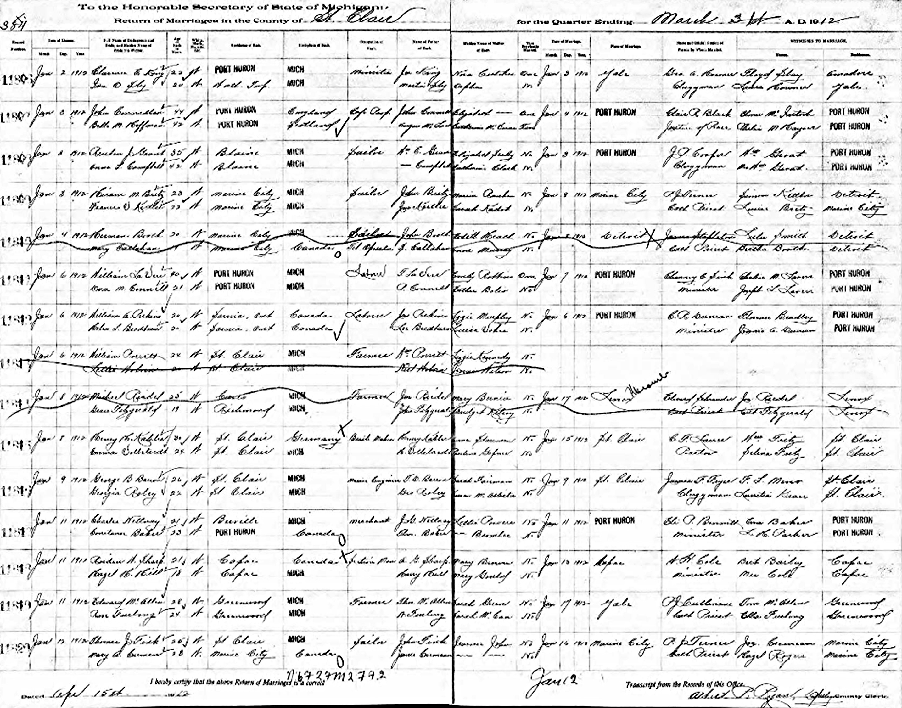 John Edward Connellan and Isabella Mae "Bella" (McLaughlin) (Unknown) Hoffman were married January 4, 1912, in Port Huron, St. Clair Co., MI.