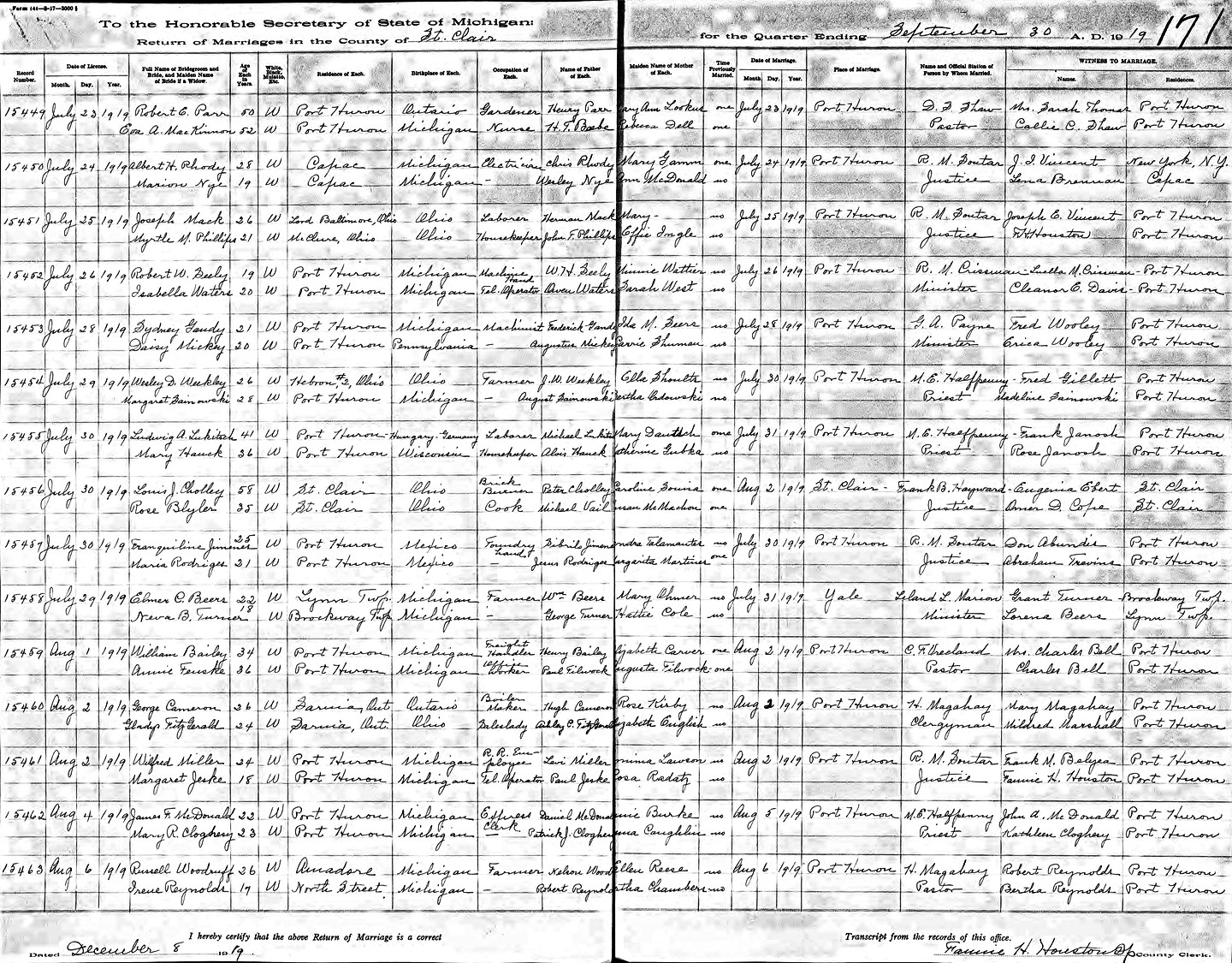 William Henry "Wilthy" Bailey and Anna "Annie" (Fillwock) Fenske were married August 2, 1919, in Port Huron, St. Clair Co., MI.