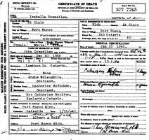 Isabella Mae "Bella" (McLaughlin) (Unknown) (Hoffman) Connellan died January 13, 1940, at her home, Port Huron, St. Clair Co., MI, at age 73. Buried in Lakeside Cemetery, Port Huron, St. Clair Co., MI.